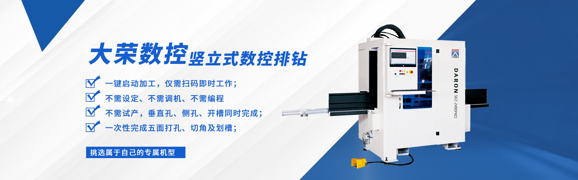 大榮偉業(yè)公司本著"品無止境,誠信為本,追求卓越"的原則,精心投入 CNC 數(shù)控機(jī)械行業(yè),先后研發(fā)出:CNC 五軸聯(lián)動(dòng)加工中心、數(shù)控板材加工中心、數(shù)控板式家具生產(chǎn)線幾大系列十幾個(gè)規(guī)格的產(chǎn)品。被廣泛應(yīng)用于機(jī)械,科研院所,保麗龍加工、車輛內(nèi)飾、厚片吸塑件、鋁板、輕金屬、絕緣材料、各類木板材、木器、木門、模具、化工、廣告、石材加工等不同領(lǐng)域,并遠(yuǎn)銷世界各國。欣大榮公司借鑒國外技術(shù),采用原裝進(jìn)口優(yōu)質(zhì)配件,確保整機(jī)質(zhì)量。企業(yè)已通過 ISO9001質(zhì)量體系認(rèn)證及 CE 認(rèn)證。